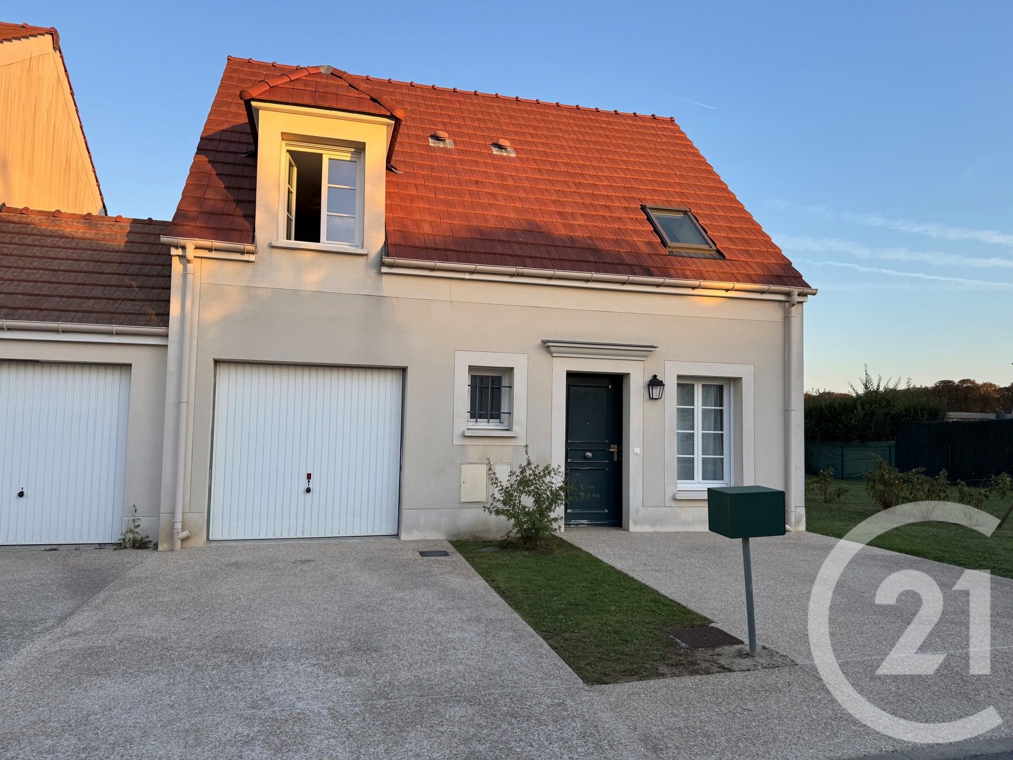 Jardin. Garage attenant et places de stationnement privatives devant la maison.